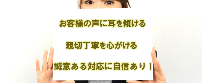 「お客様第一主義」を合言葉にコンプライアンスを重視し営業に心がけております。