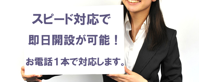 A 来店して頂ければ即日可能です。非対面の場合は住所確認が必要になりますので書類到着までの期間を要します。